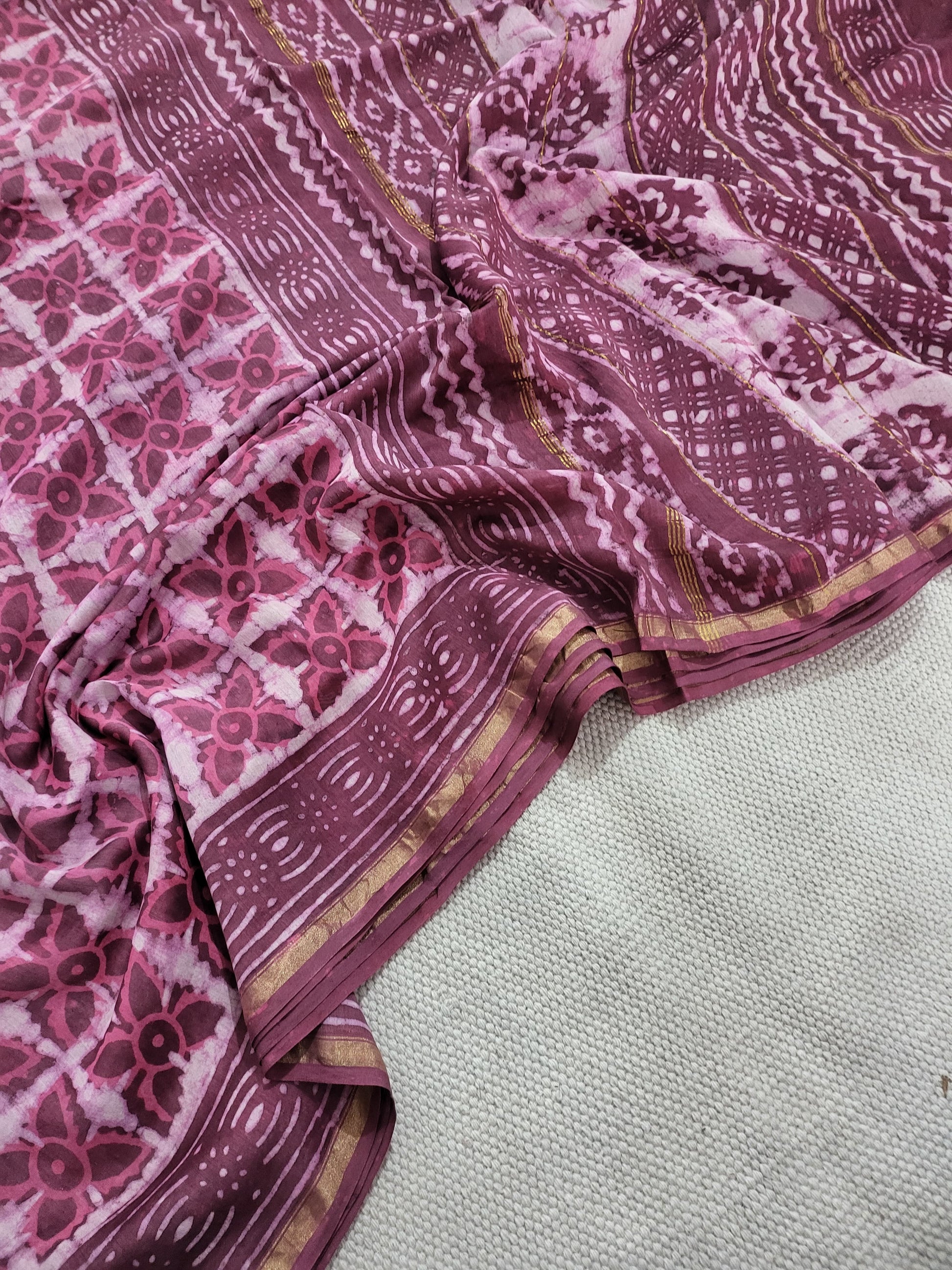Dabu Bagru Handblock Prints Chanderi Silk Saree